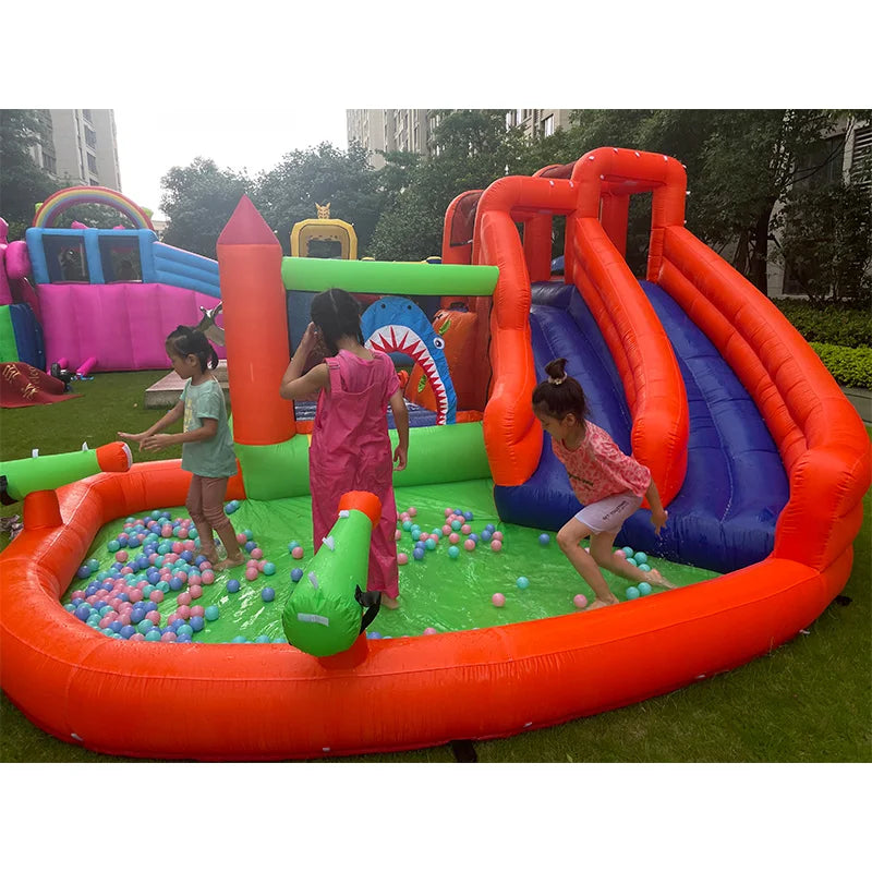 Inflatable Water Slide Bounce House with 680W Blower and 2 Pools
